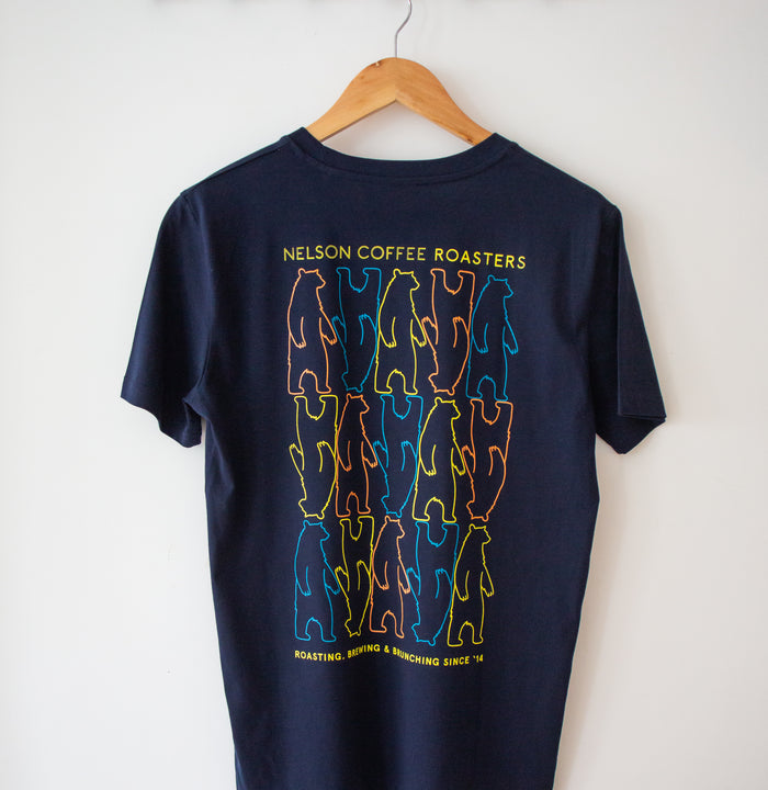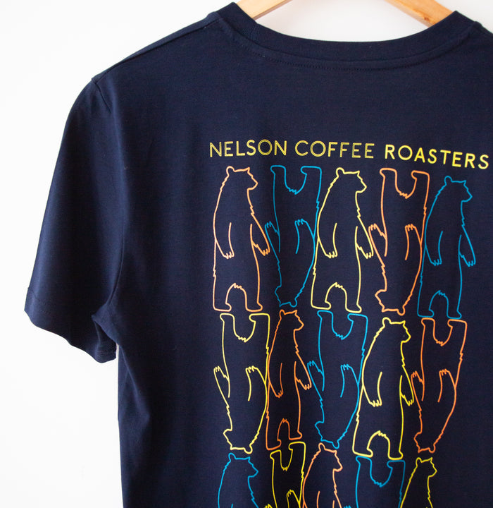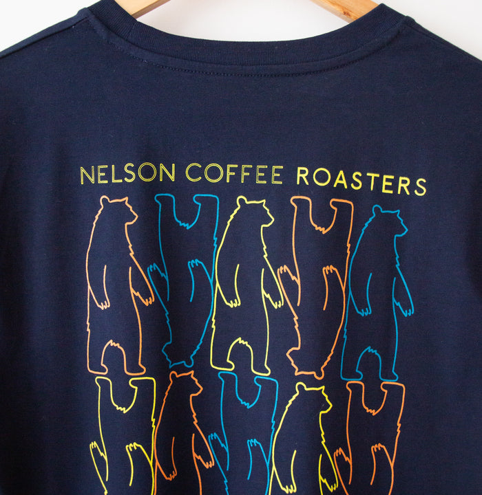 Featuring our iconic bear logo, the t-shirt is a nod to our commitment to excellence in coffee roasting. The logo is more than just a design; it's a symbol of the care, expertise, and passion that goes into every cup of Nelson Coffee.